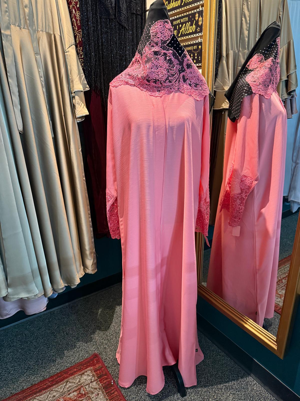 Step into elegance with this stunning lace abaya, crafted to combine modesty with delicate sophistication.