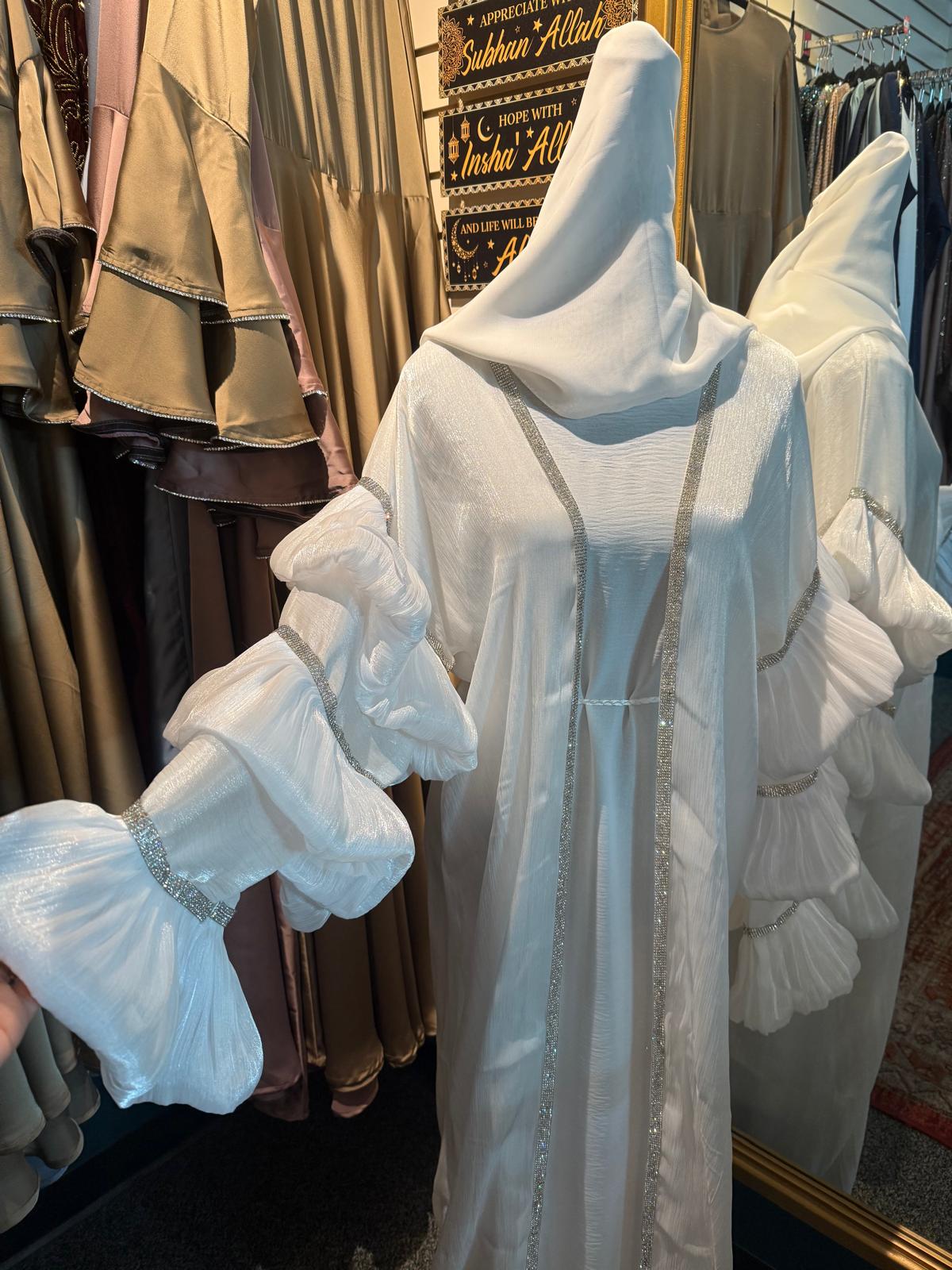 A symbol of purity and grace, this white abaya is designed with exquisite attention to detail. The soft, high-quality fabric drapes beautifully, offering both comfort and elegance. Ideal for Eid, formal gatherings, or spiritual occasions