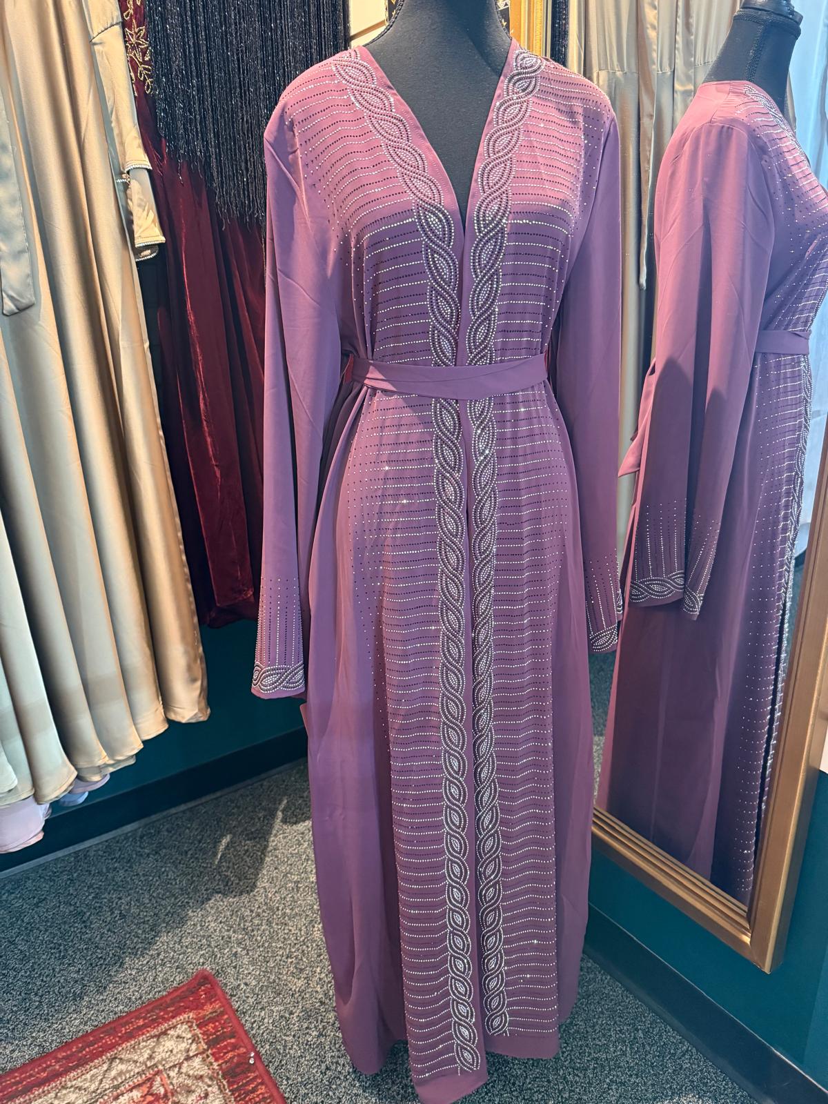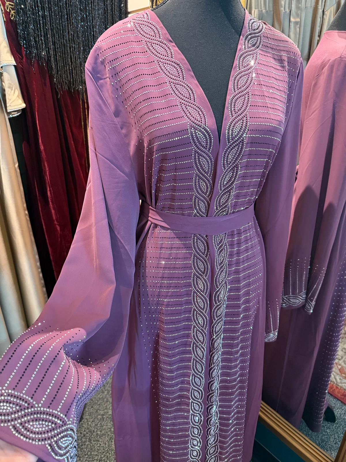 A full stone work abaya is a luxurious and elegant style of abaya, typically designed for special occasions such as weddings, Eid celebrations, or evening events.