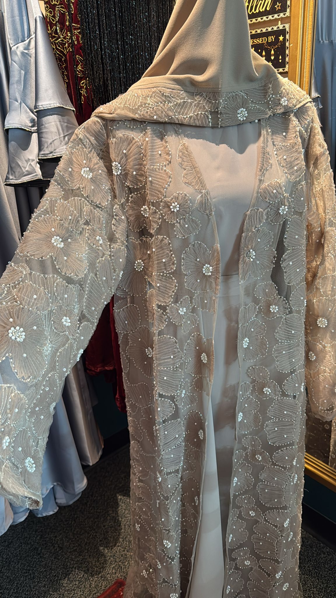 Turn heads with this exquisite fancy khaki brown floral abaya, designed for the modern woman who appreciates tradition with a touch of luxury. Crafted from premium, flowy fabric, this abaya features a rich khaki brown hue that exudes sophistication and grace.